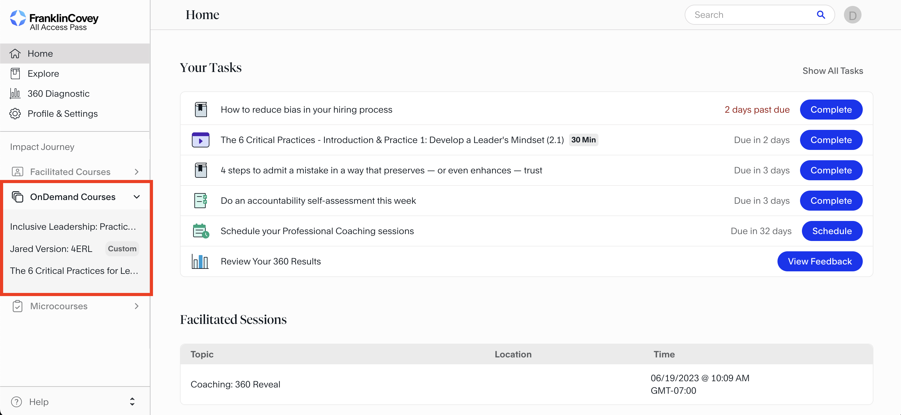 Os alunos da Impact Platform podem ler este artigo para saber mais sobre os cursos sob demanda da FranklinCovey, incluindo acessar e se matricular em experiências de aprendizado sob demanda.